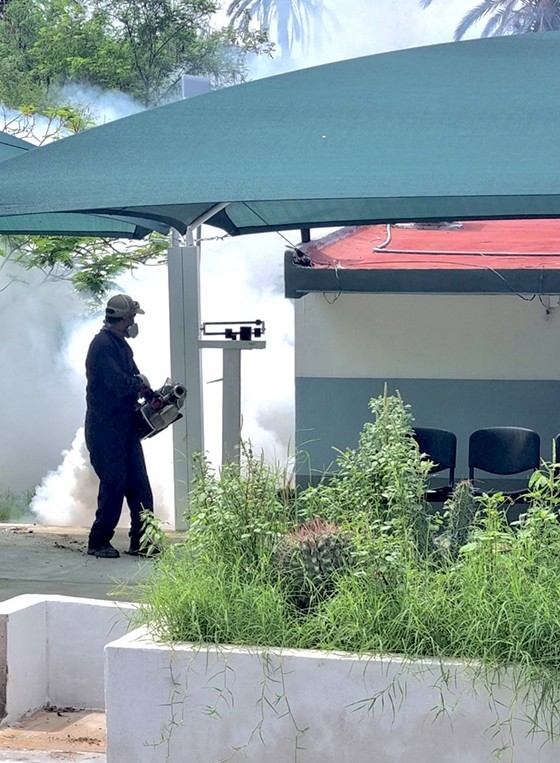 Como parte de las acciones que lleva a cabo el Gobierno del Estado en la población de San Ignacio, en el municipio de Mulegé derivado de las lluvias registradas en dicha zona, brigadas de la Secretaría de Salud llevan a cabo acciones de control larvario y de fumigación para inhibir la presencia del mosco transmisor del dengue, con ello reducir riesgos por un brote de este padecimiento febril.