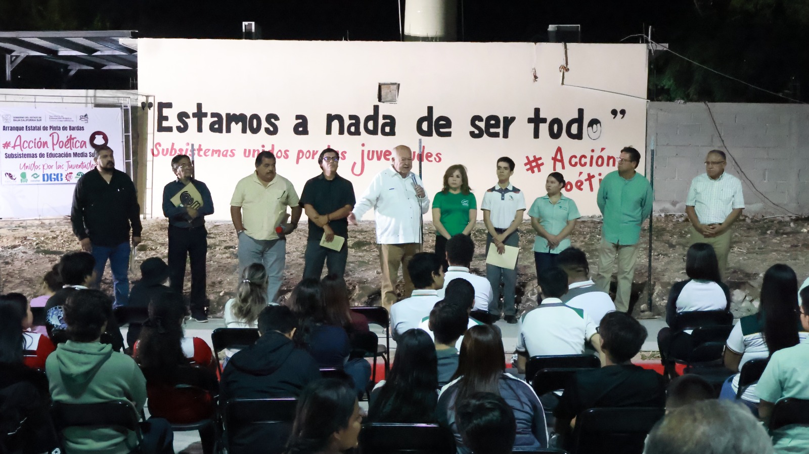 Asimismo, se entregó la cancha de fútbol del CECyTE EMSAD 13 "Márquez de León", con apoyo de la iniciativa privada, y se puso en marcha el programa estatal de pinta de bardas "Acción Poética", que contempla la intervención de 100 espacios en el municipio y otras localidades. Castro Cosío reiteró que su administración continuará impulsando acciones para atender las necesidades de la población y fortalecer las comunidades en Baja California Sur.